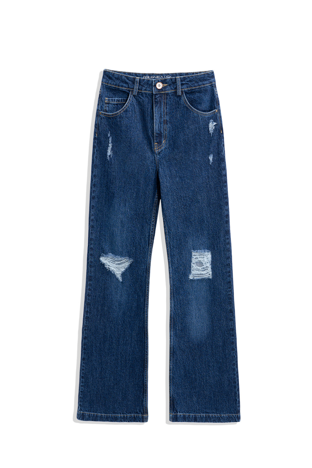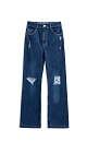 Straight-fit jeans with a slight flare. Model with slits in grunge style. Side and back pockets. Zip fastening and metal buttons.