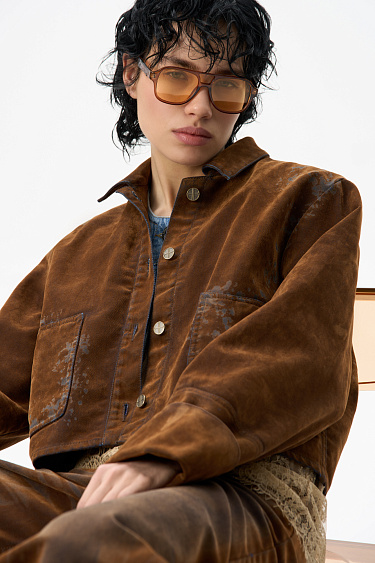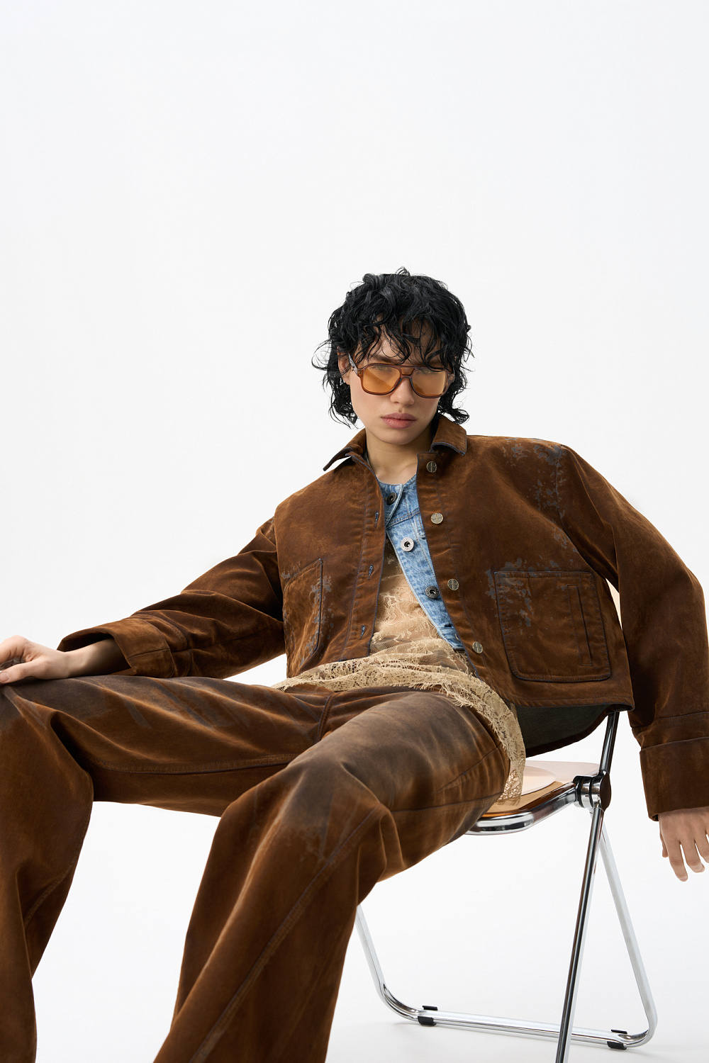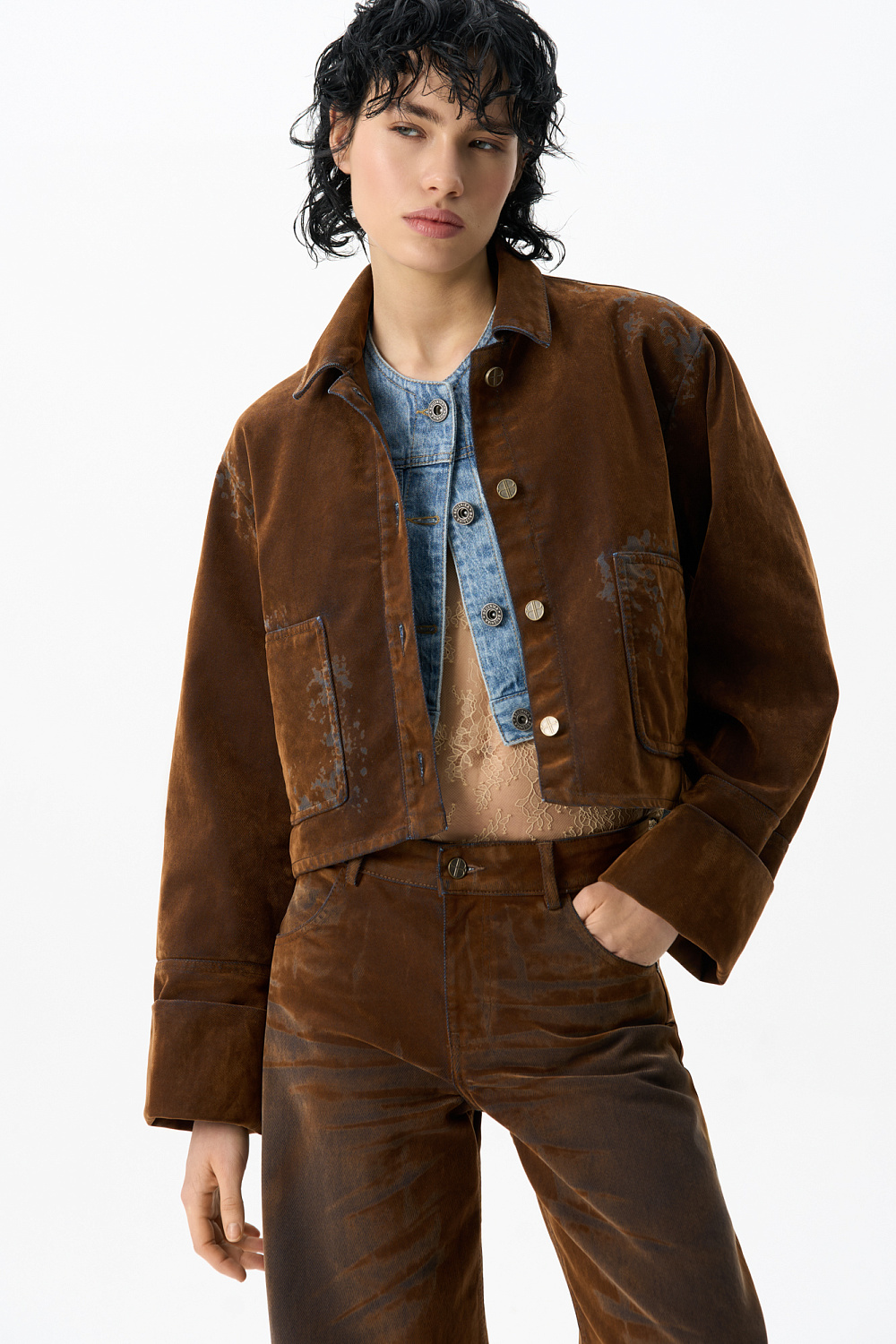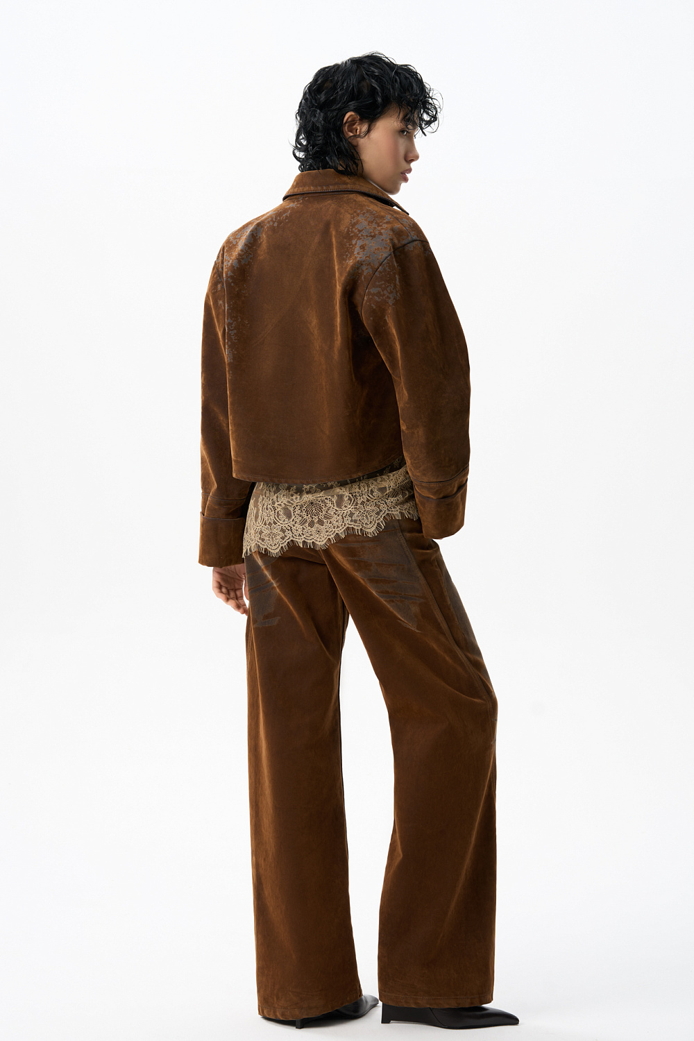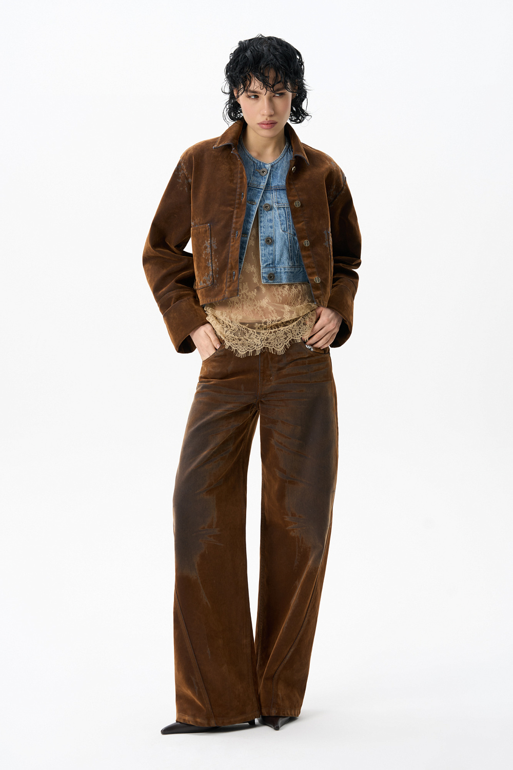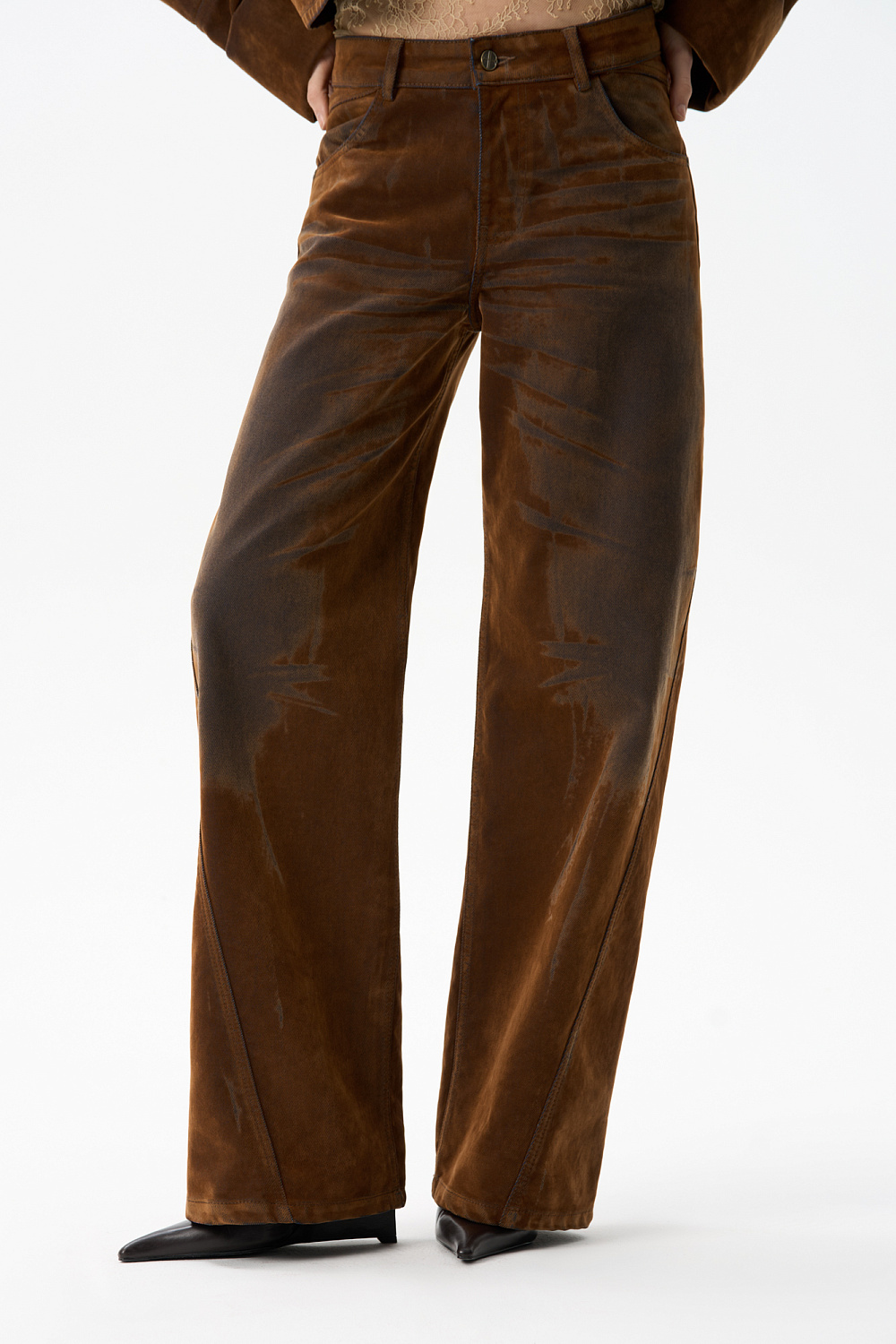 Jeans made of flocked denim - cotton with an imitation velvet texture. Straight fit model with belt loops and pockets. Zip and button closure.