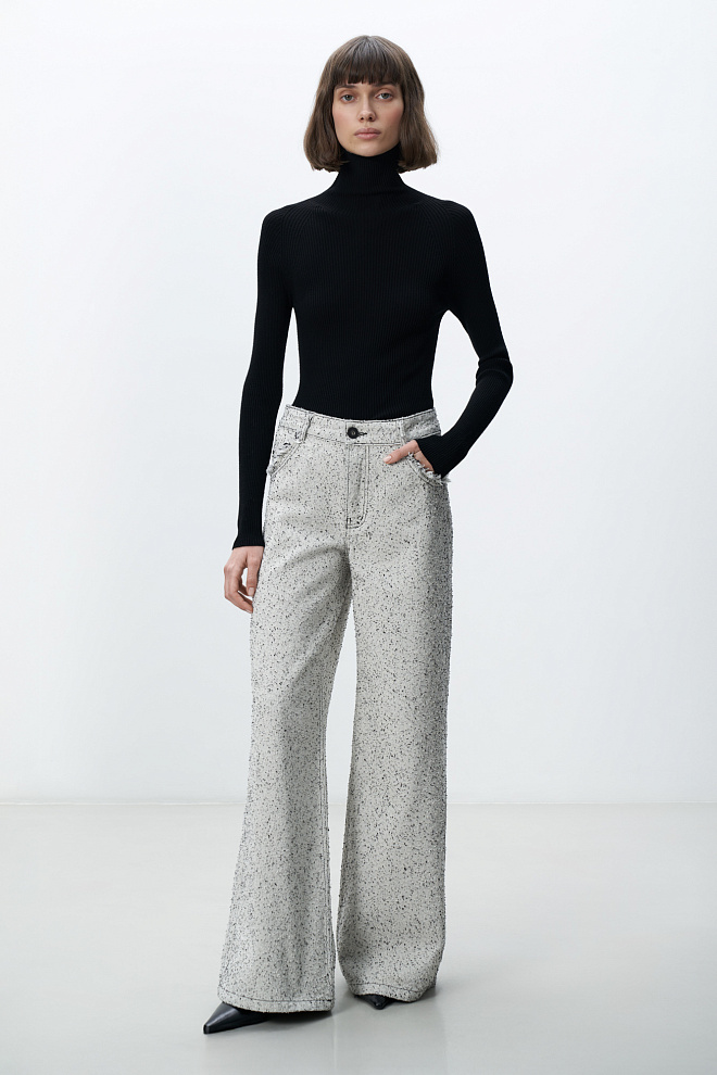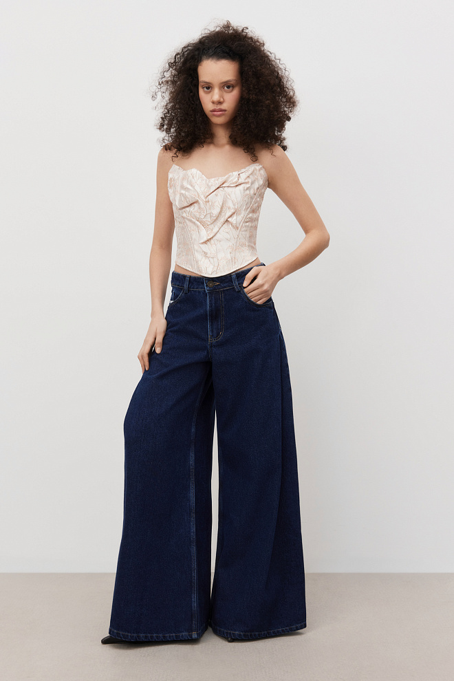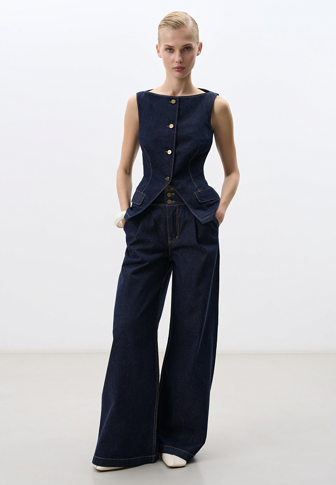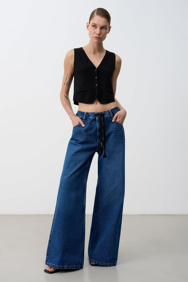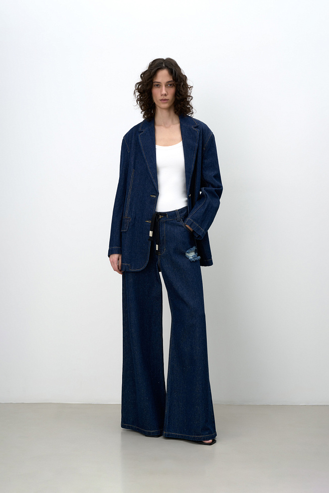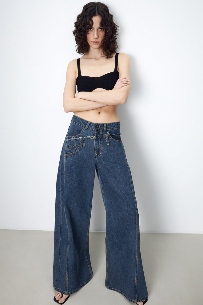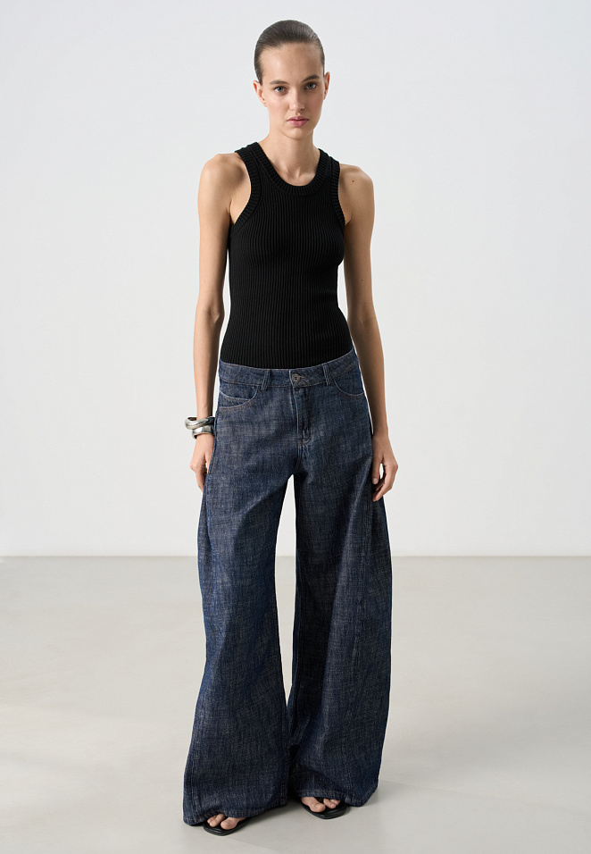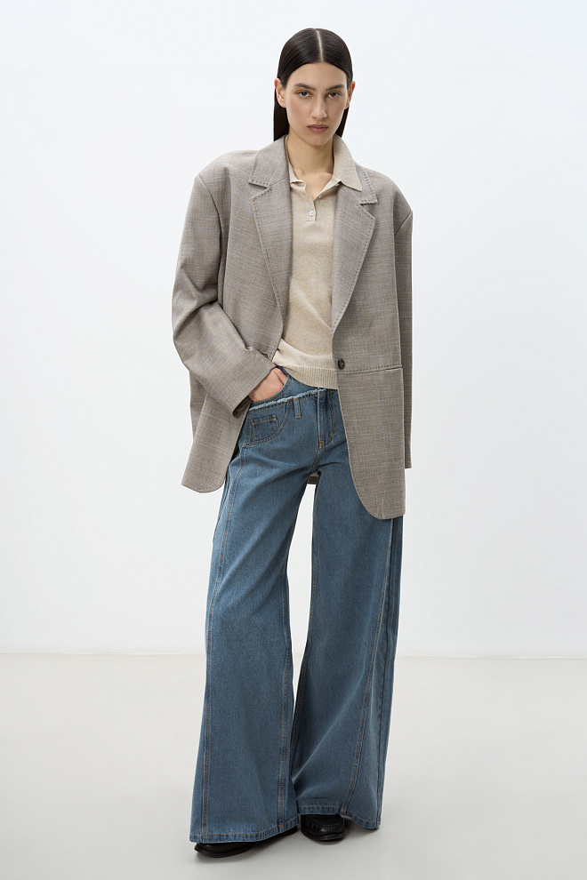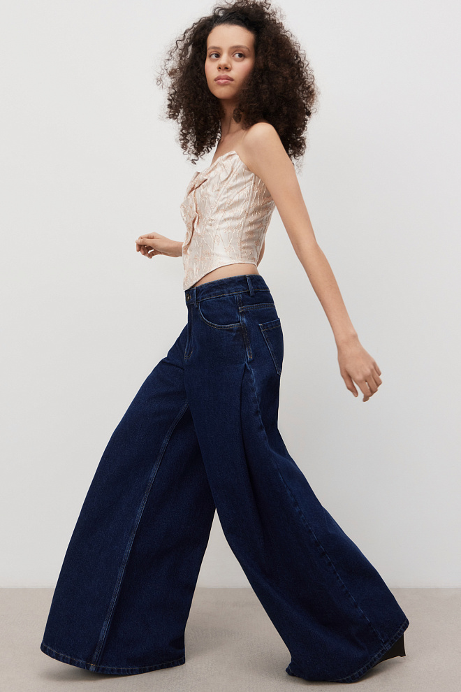 Wide leg hemp and cotton blend jeans