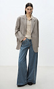 Straight jeans with an asymmetrical belt and slight flare. Five pockets. Zip and metal button closure.