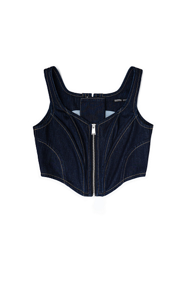 Wide leg 100% cotton jeans with side pockets, a drawstring and a hidden zipper and button fastening. You can complement the look with denim jacket or a corset.