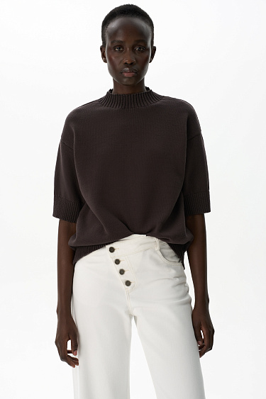 Mid-rise straight jeans. Five pockets, zip and metal button closure.