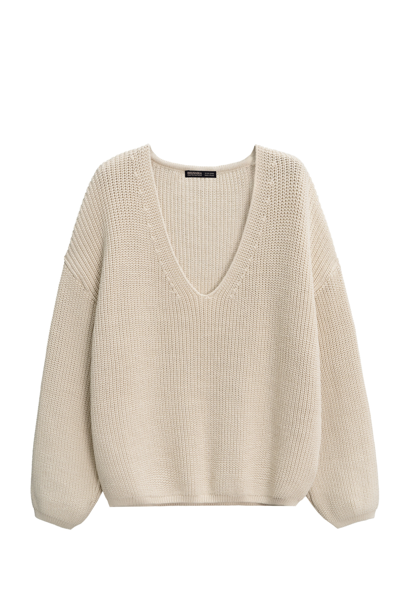 Knitted jumper made of cotton with added elastane. Loose silhouette model with a V-neckline and dropped shoulders.
