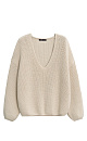 Knitted jumper made of cotton with added elastane. Loose silhouette model with a V-neckline and dropped shoulders.