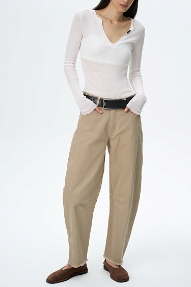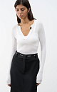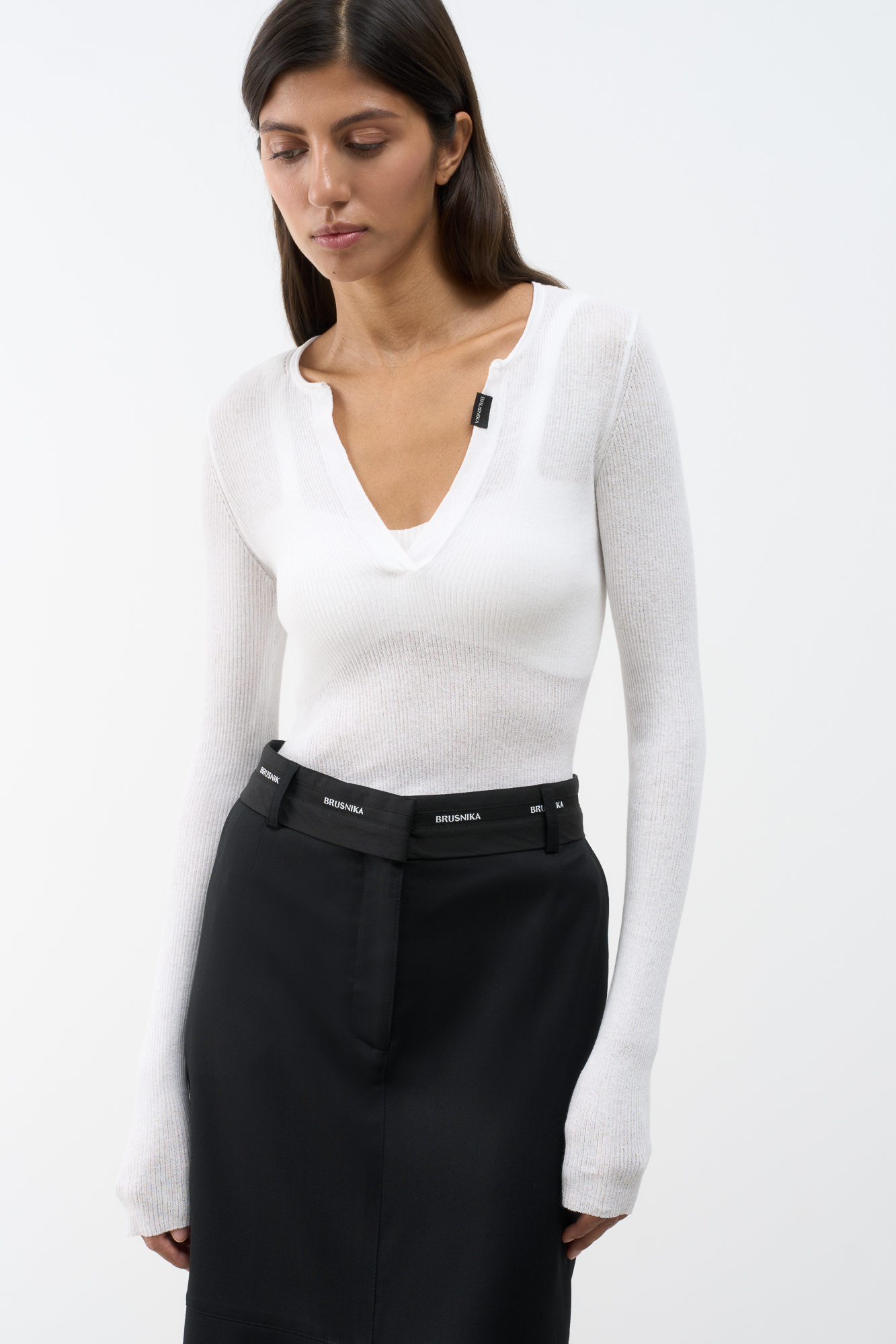Fitted knit top with cut-out. Features long sleeves and logo placket.