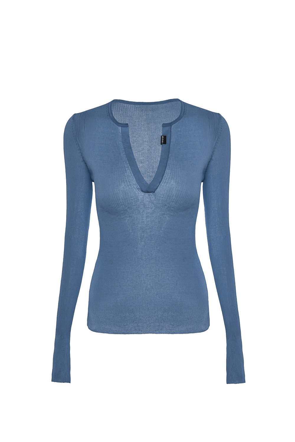 Fitted knit top with cut-out. Features long sleeves and logo placket.