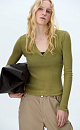 Fitted knit top with cut-out. Features long sleeves and logo placket.