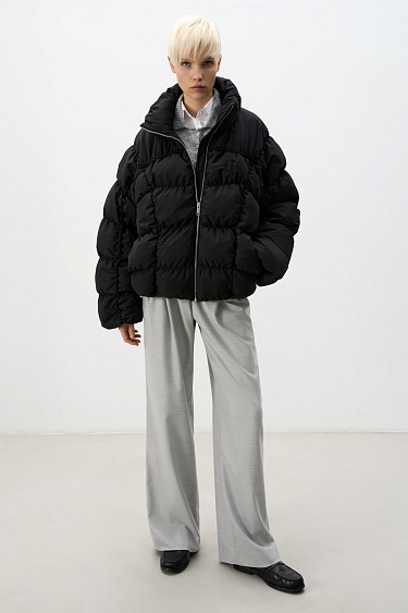 Quilted down jacket with a stand collar