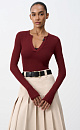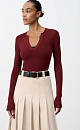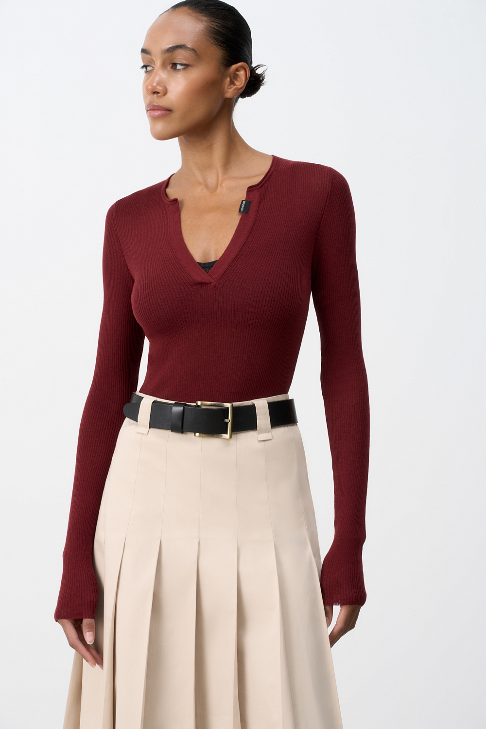 Fitted knit top with cut-out. Features long sleeves and logo placket.