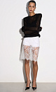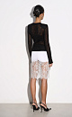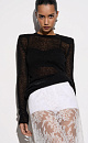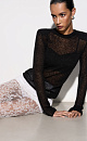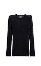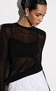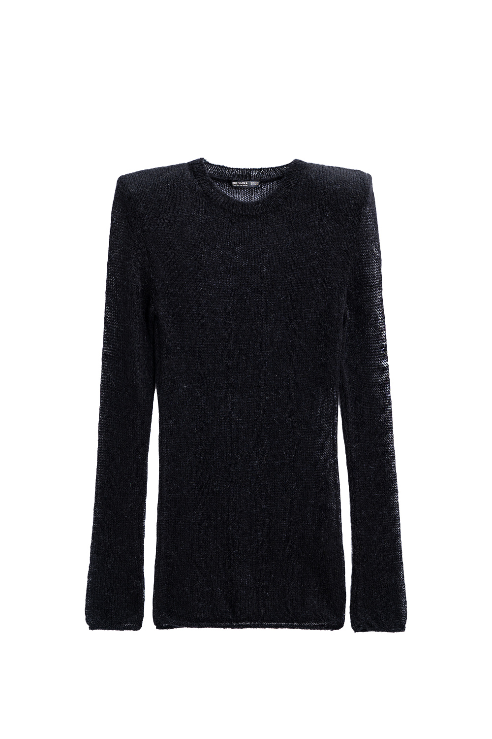 Translucent knitted jumper made of wool with the addition of mohair. Fitted model with a round neckline. Product with shoulder pads.