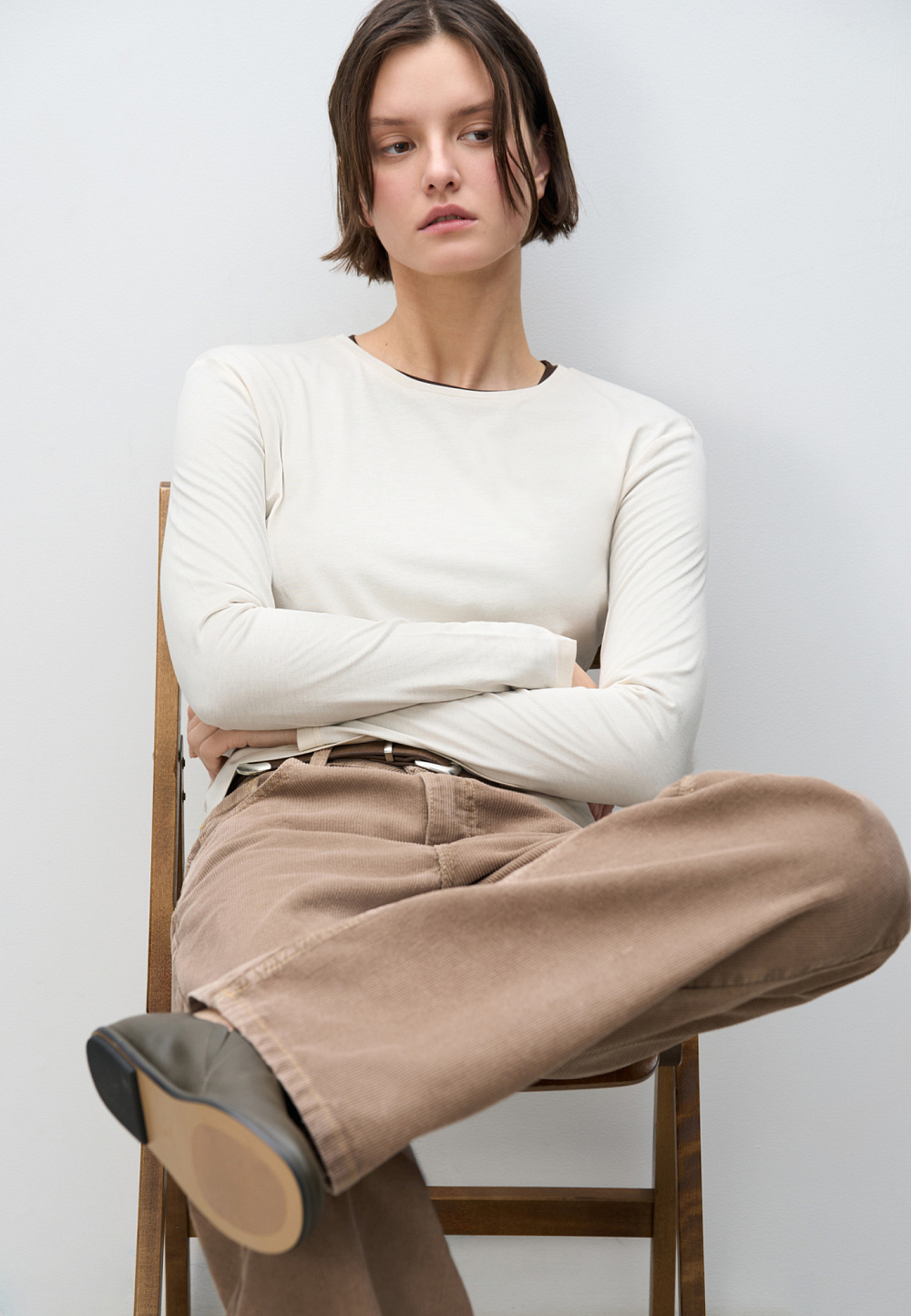 Basic long sleeve made of cotton with added wool. Fitted model with long sleeves and a round neckline.