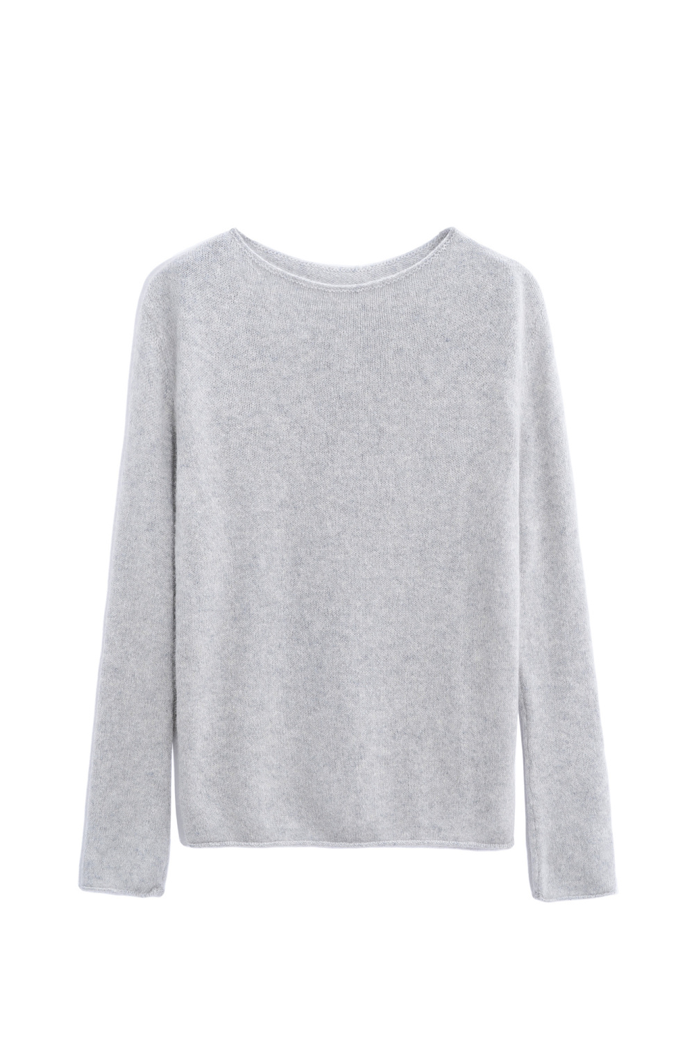 Knitted long sleeve made of fox fluff. A fitted model with dropped shoulders and a boat neckline.