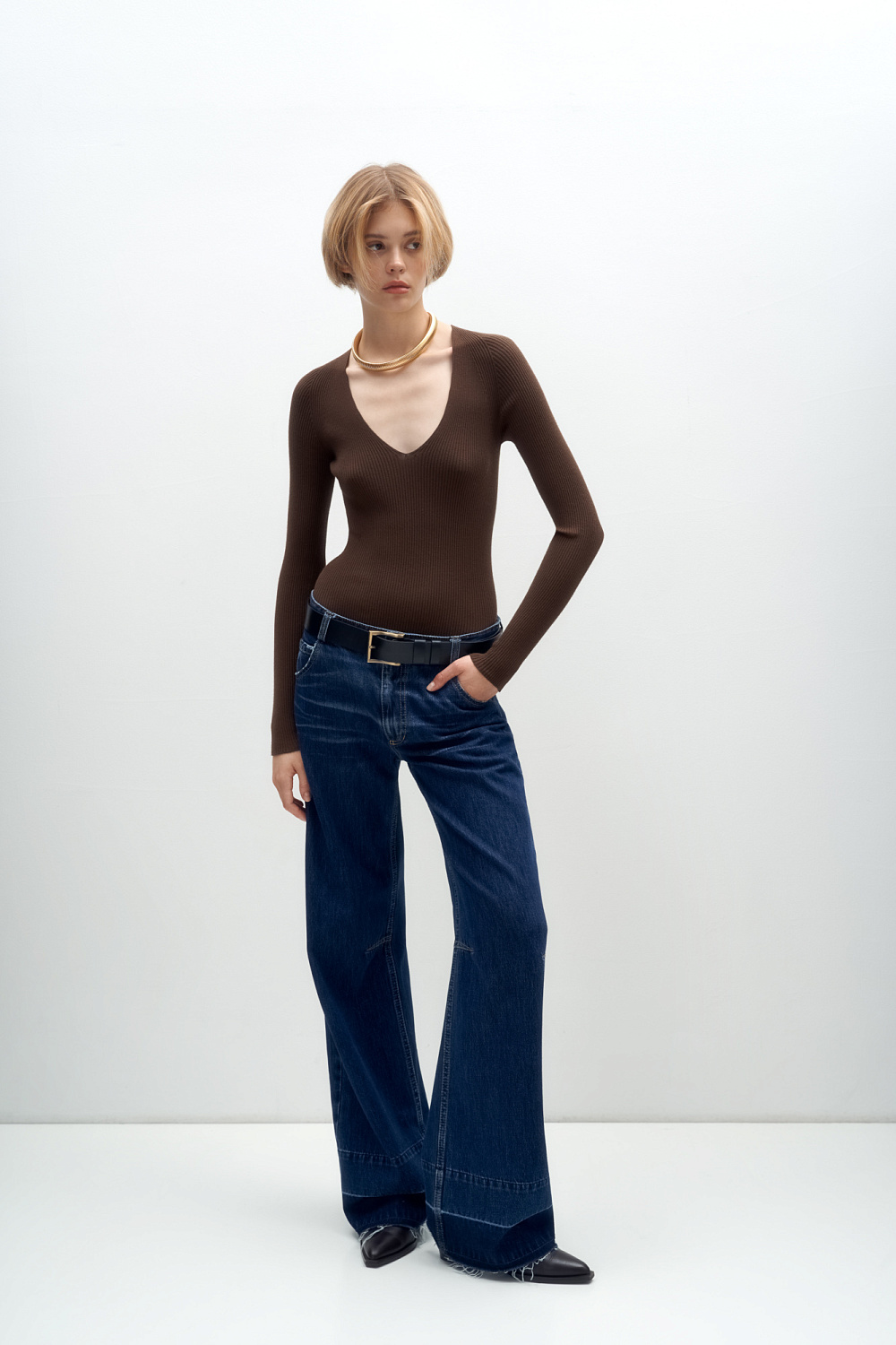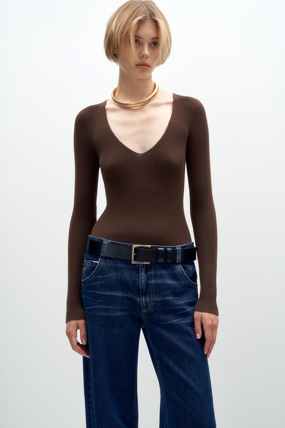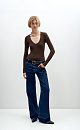 Ribbed viscose jumper with long sleeves and V-neck.