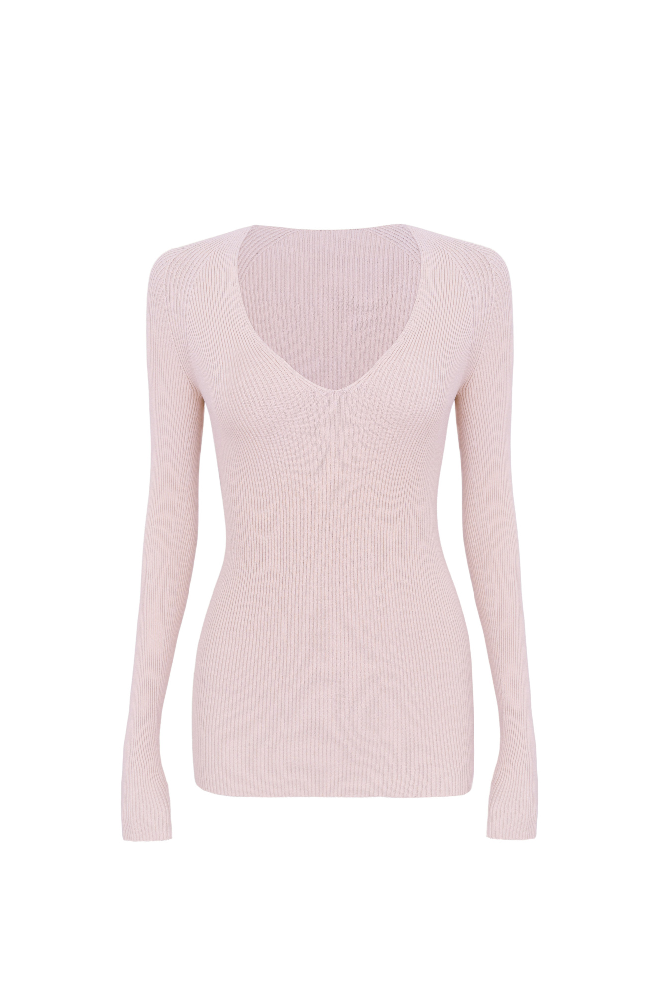 Ribbed viscose jumper with long sleeves and V-neck.
