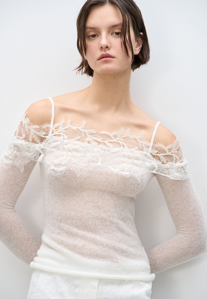 Merino wool jumper with lace