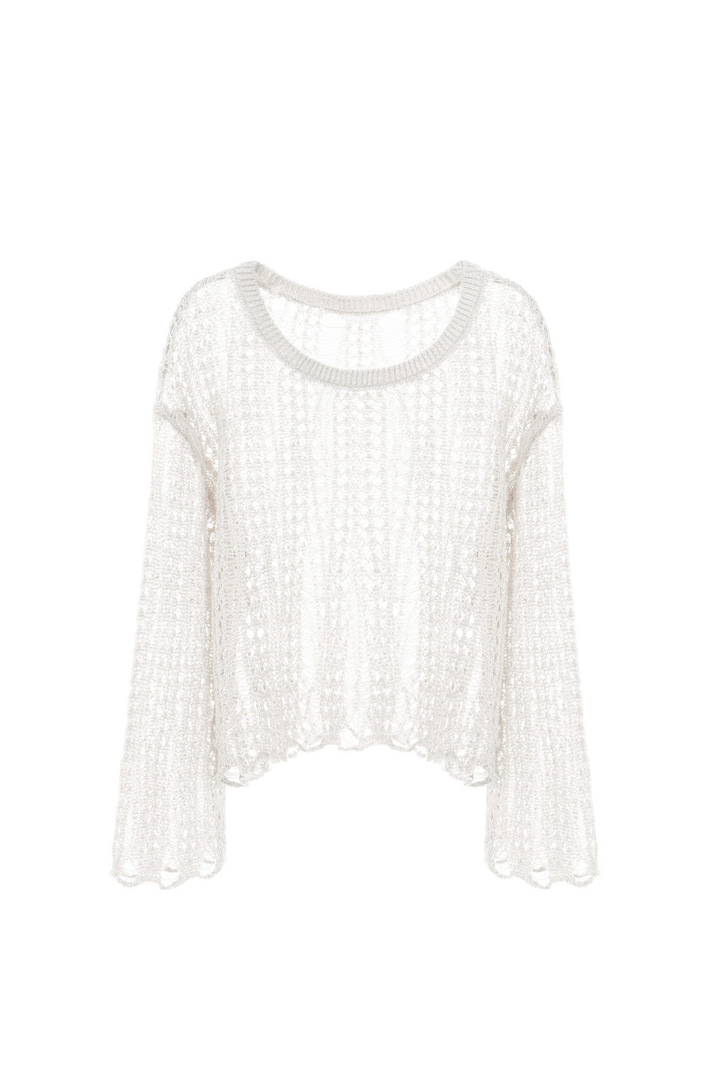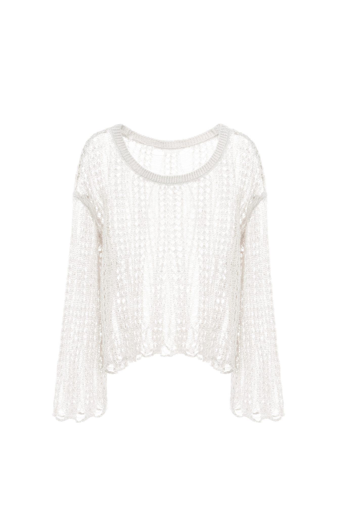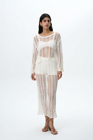Semi-sheer openwork jumper. Features loose silhouette and dropped shoulders line. You can complement the look with a matching skirt.