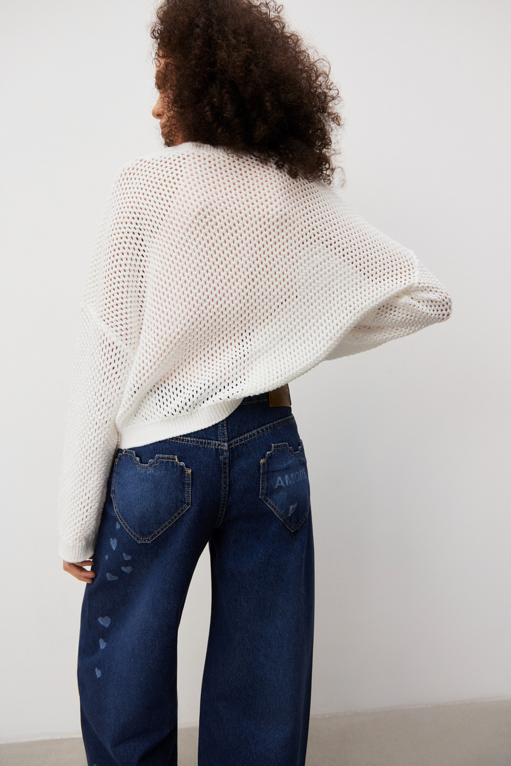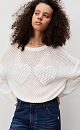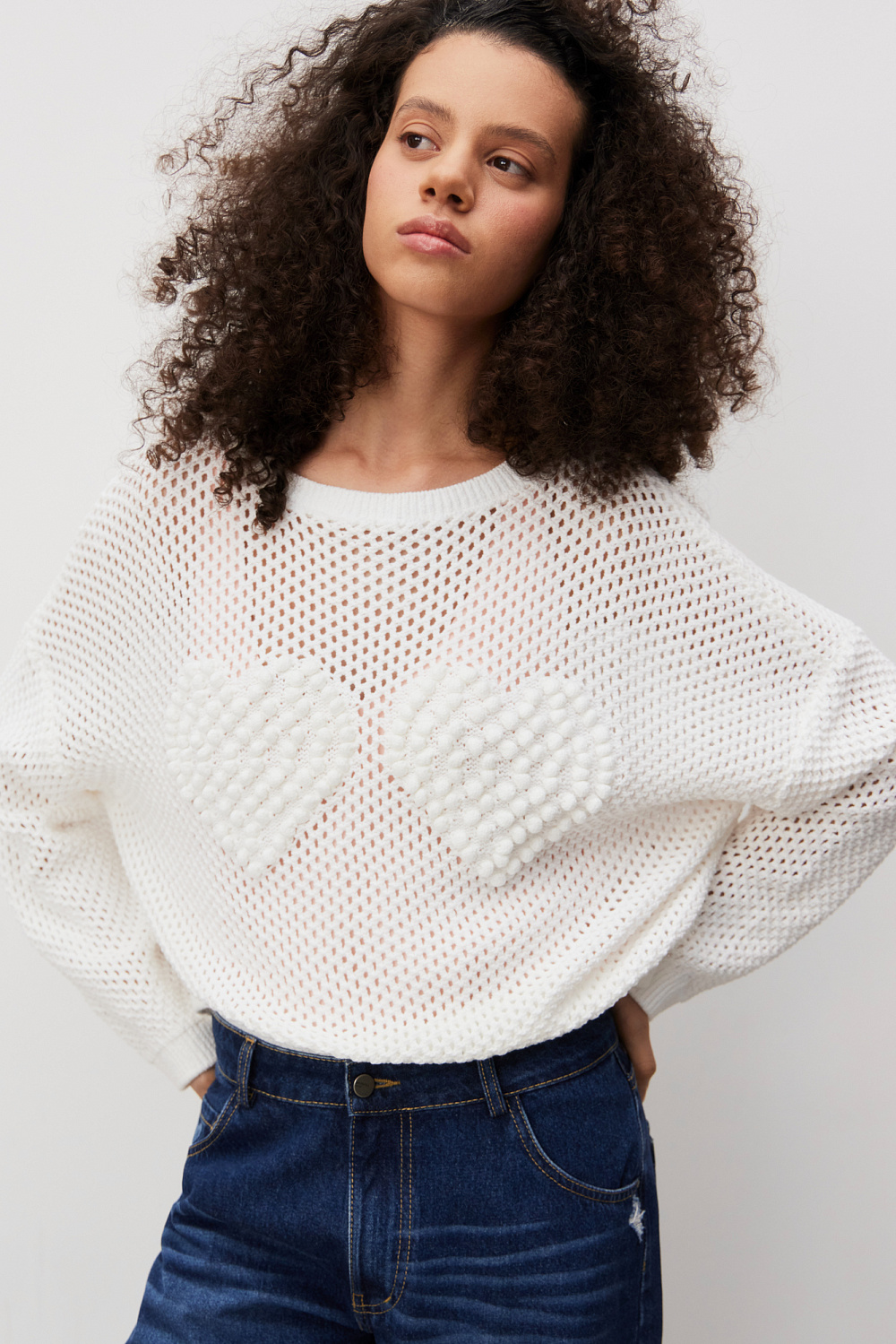 Cotton knitted jumper. Loose silhouette model with dropped shoulders and hearts on the chest.
