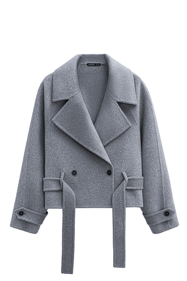 Knitted jumper made of 100% cotton. Loose silhouette model with raglan sleeves and V-neck. The neckline and bottom of the product are decorated with lace in a contrasting color.