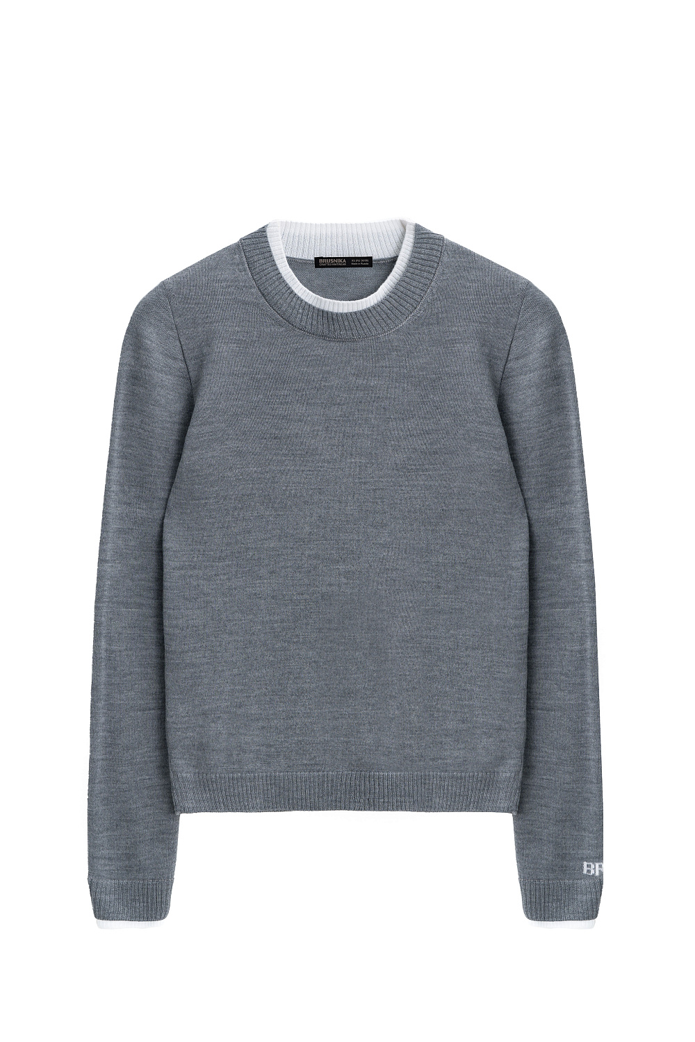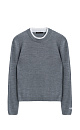 Knitted wool jumper. Relaxed silhouette with contrasting cuffs and collar. The product is decorated with branded jacquard on the sleeve and logo on the back.