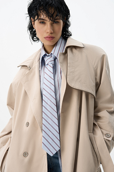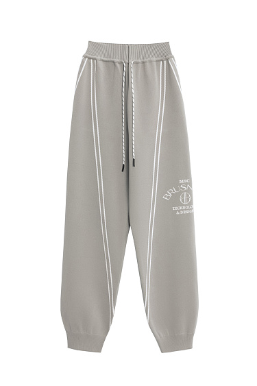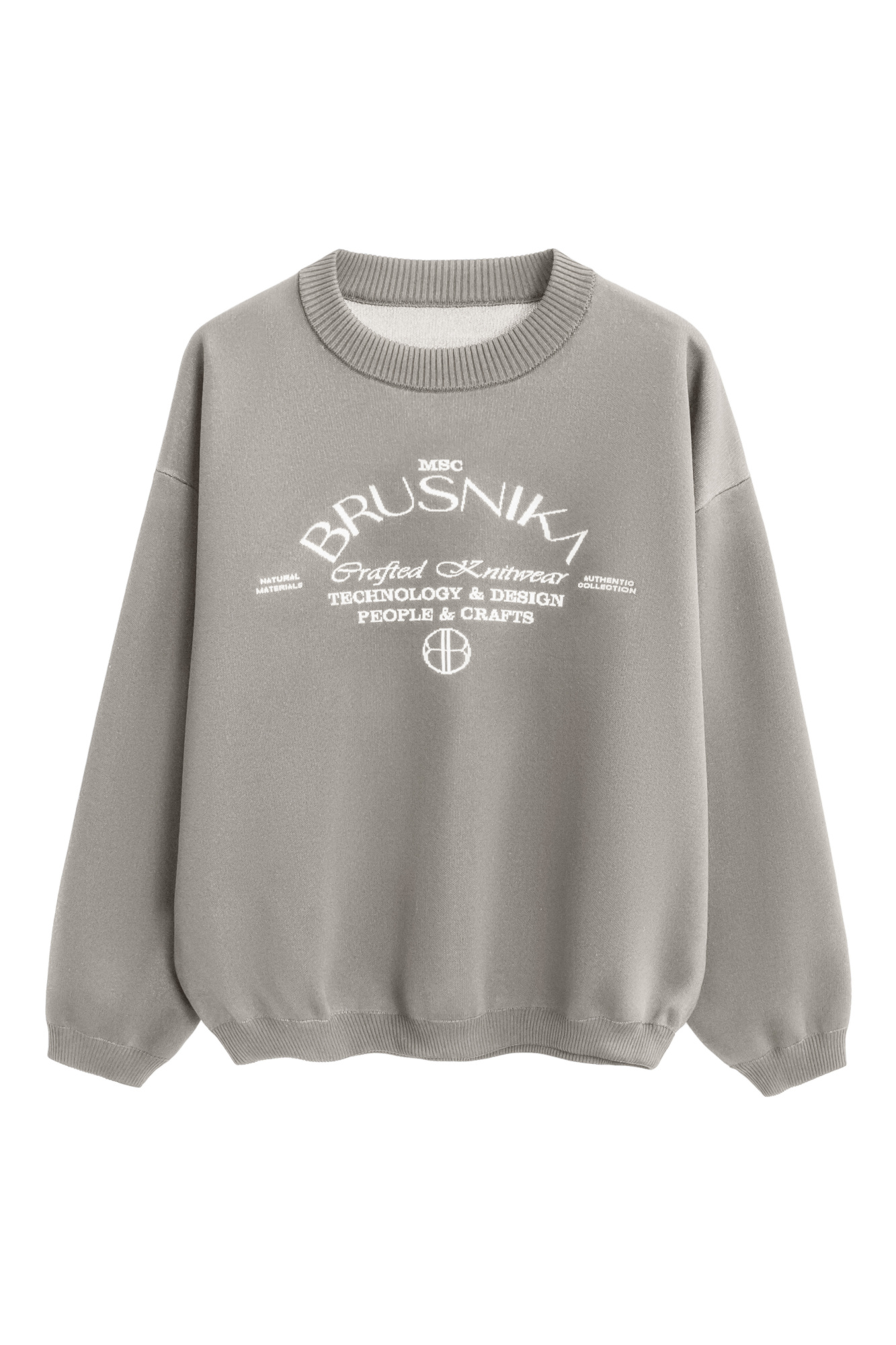 Knitted viscose jumper. Loose silhouette model with long sleeves, dropped shoulders and a round neckline. The edges are ribbed. The product is decorated with branded jacquard.