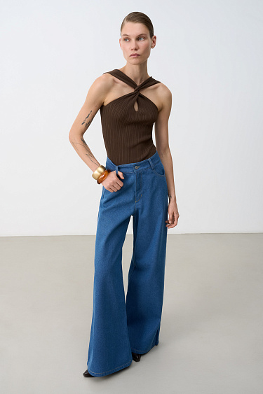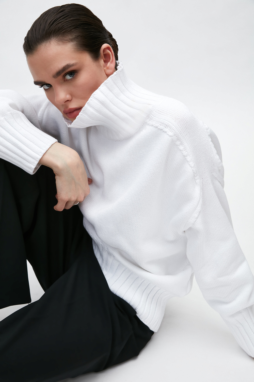 Oversized cotton jumper with a high neck. Ribbed cuffs and hem.