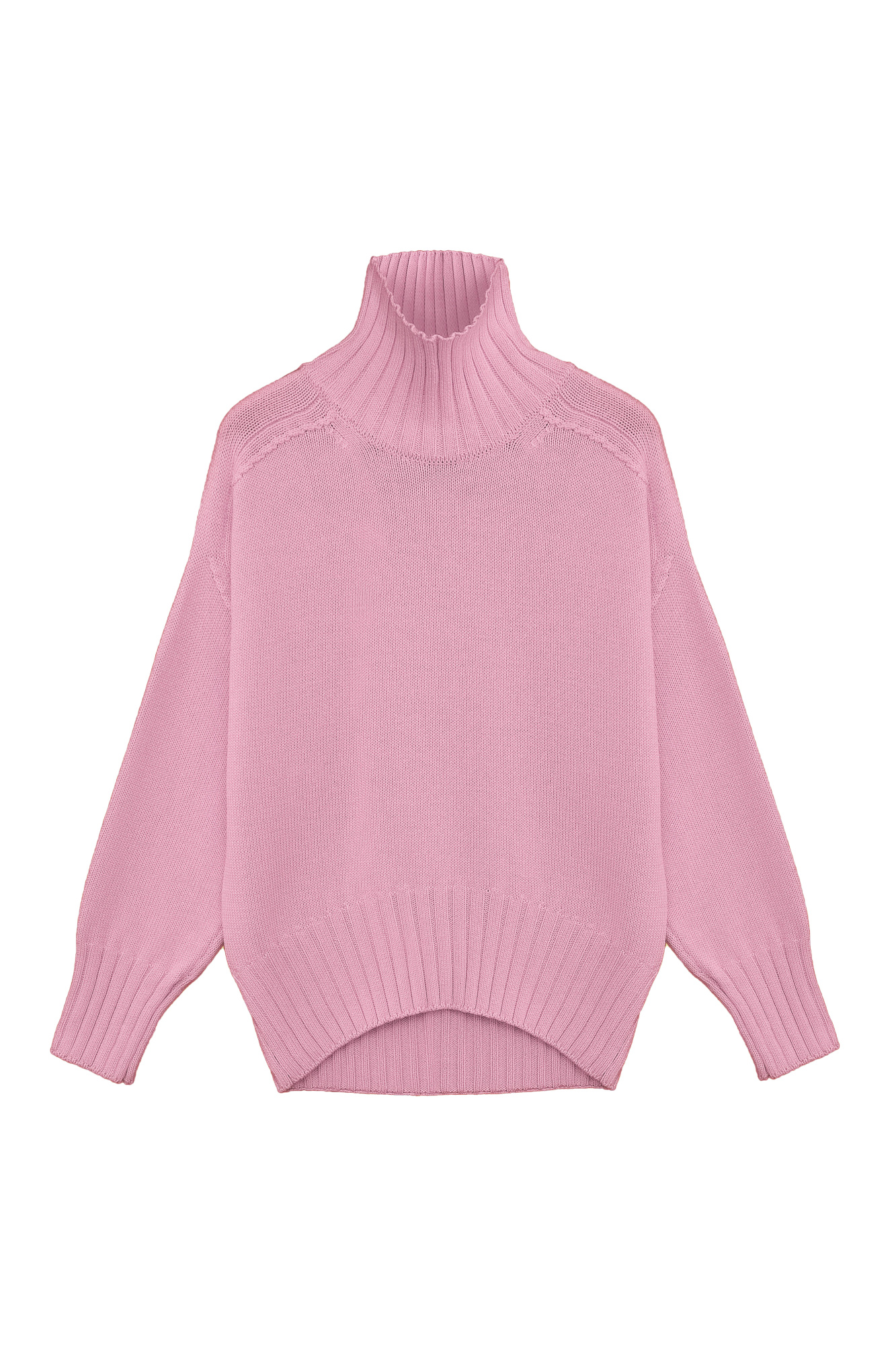 Oversized cotton jumper with a high neck. Ribbed cuffs and hem.