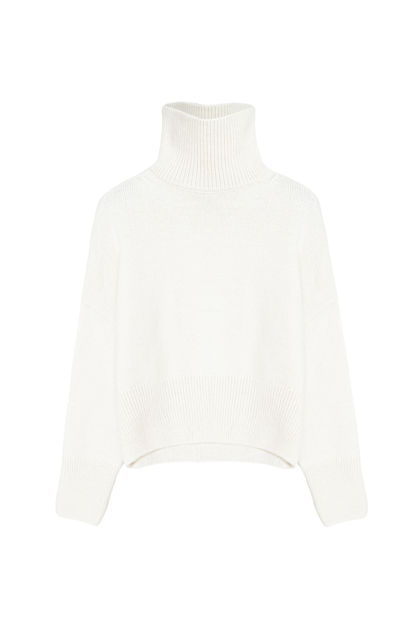 Alpaca wool jumper with a high collar, dropped shoulders and long sleeves. Ribbed cuffs and hem.