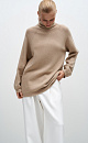 Oversized jumper in a cashmere and wool blend. High ribbed collar, dropped shoulders and a longline back with a jacquard sweetheart pattern.