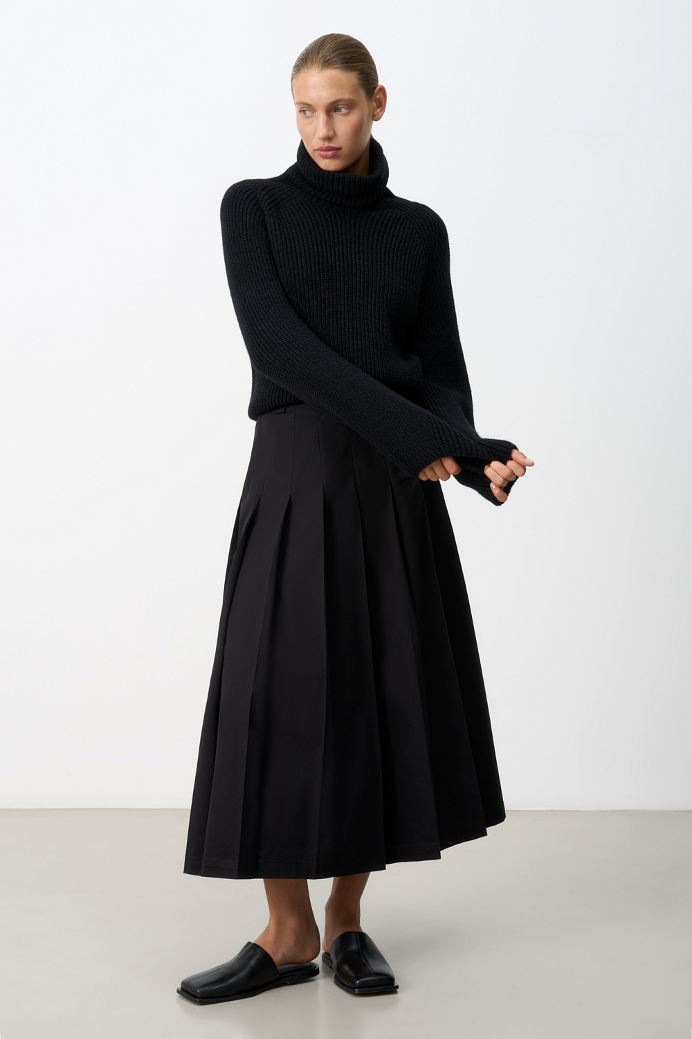 Rib-knit alpaca wool cropped jumper. Loose silhouette with high collar