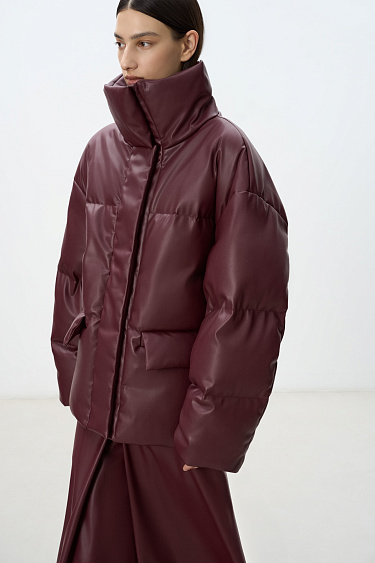 Loose 100% cotton knitted jumper with a high collar and dropped shoulders.