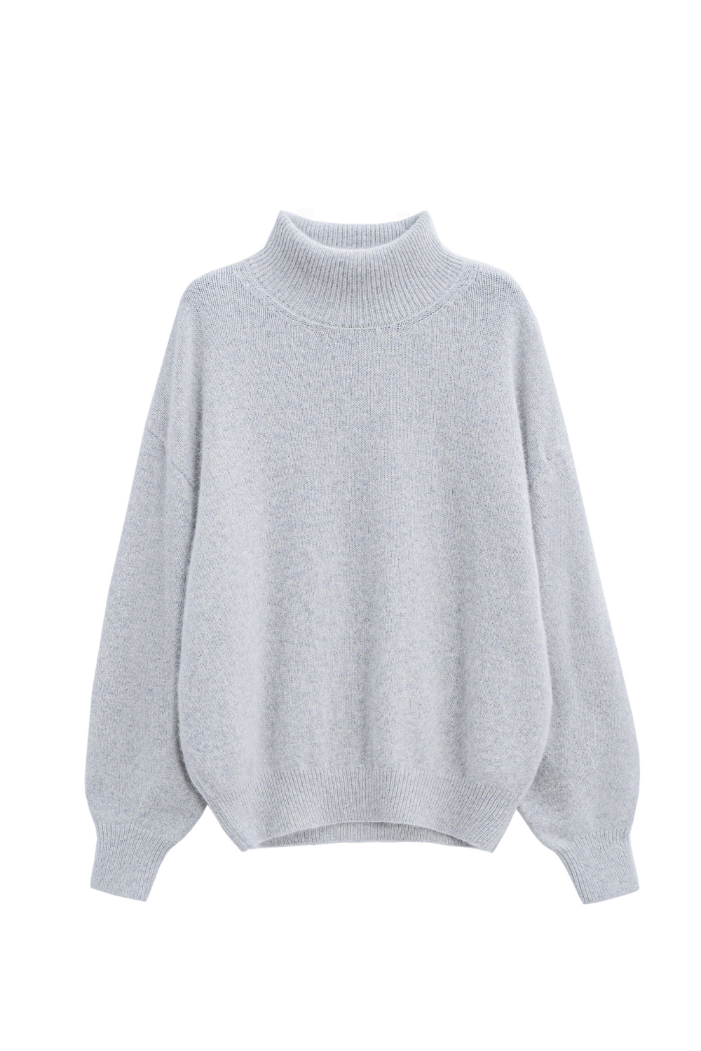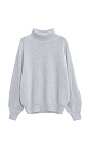 Knitted jumper made of fox down. The model has a loose silhouette with a high collar, dropped shoulders and wide sleeves with elasticated cuffs.