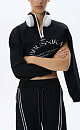 Printed viscose jumper. The model has a loose silhouette with dropped shoulders and a stand-up collar fastened with a zipper. The cuffs and hem of the product are ribbed.