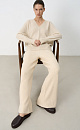 V-neck jumper made of 100% cashmere. Loose silhouette model with dropped shoulder line. The edges of the product are ribbed.