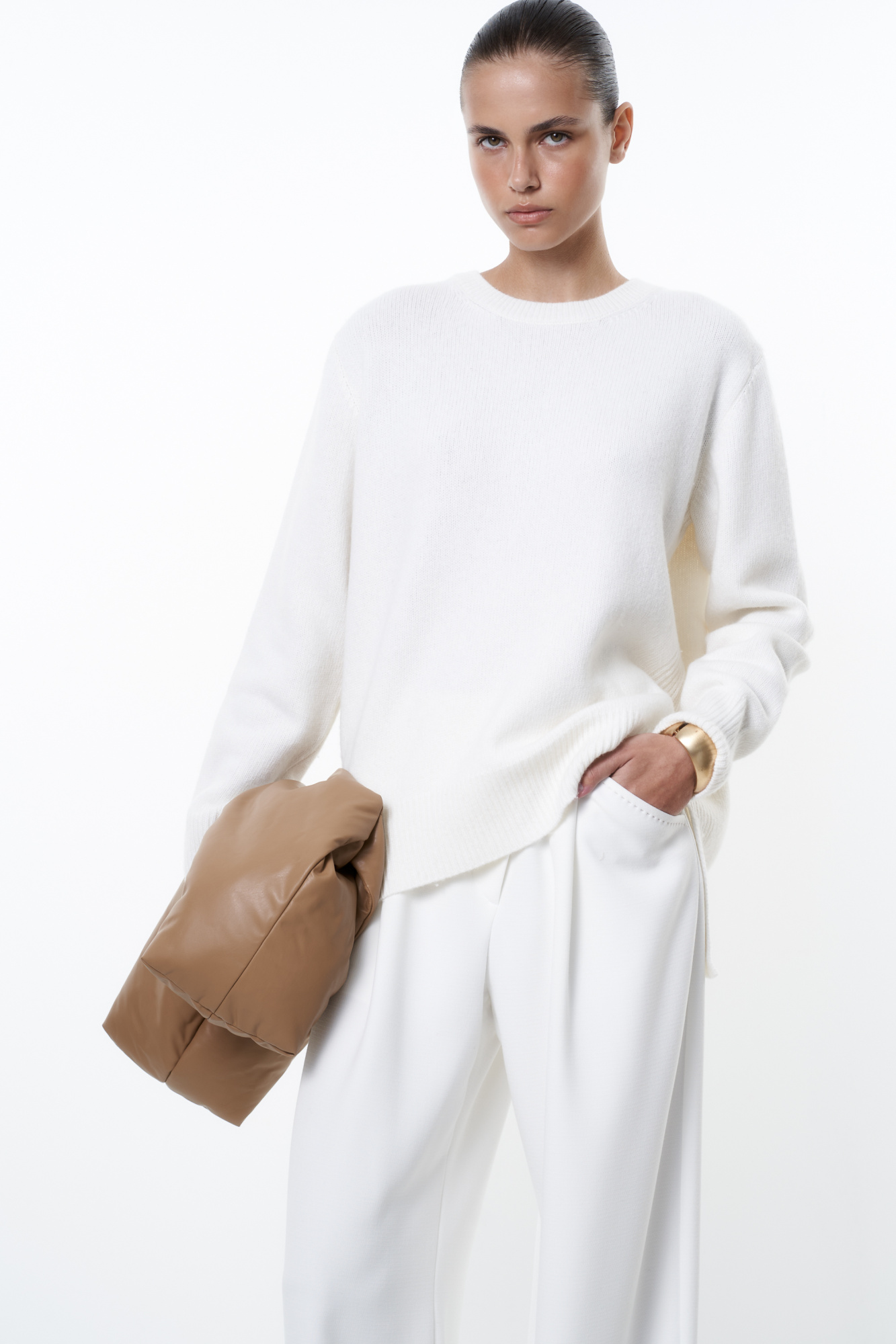Cashmere and wool jumper with a round neck and slits on the sides.