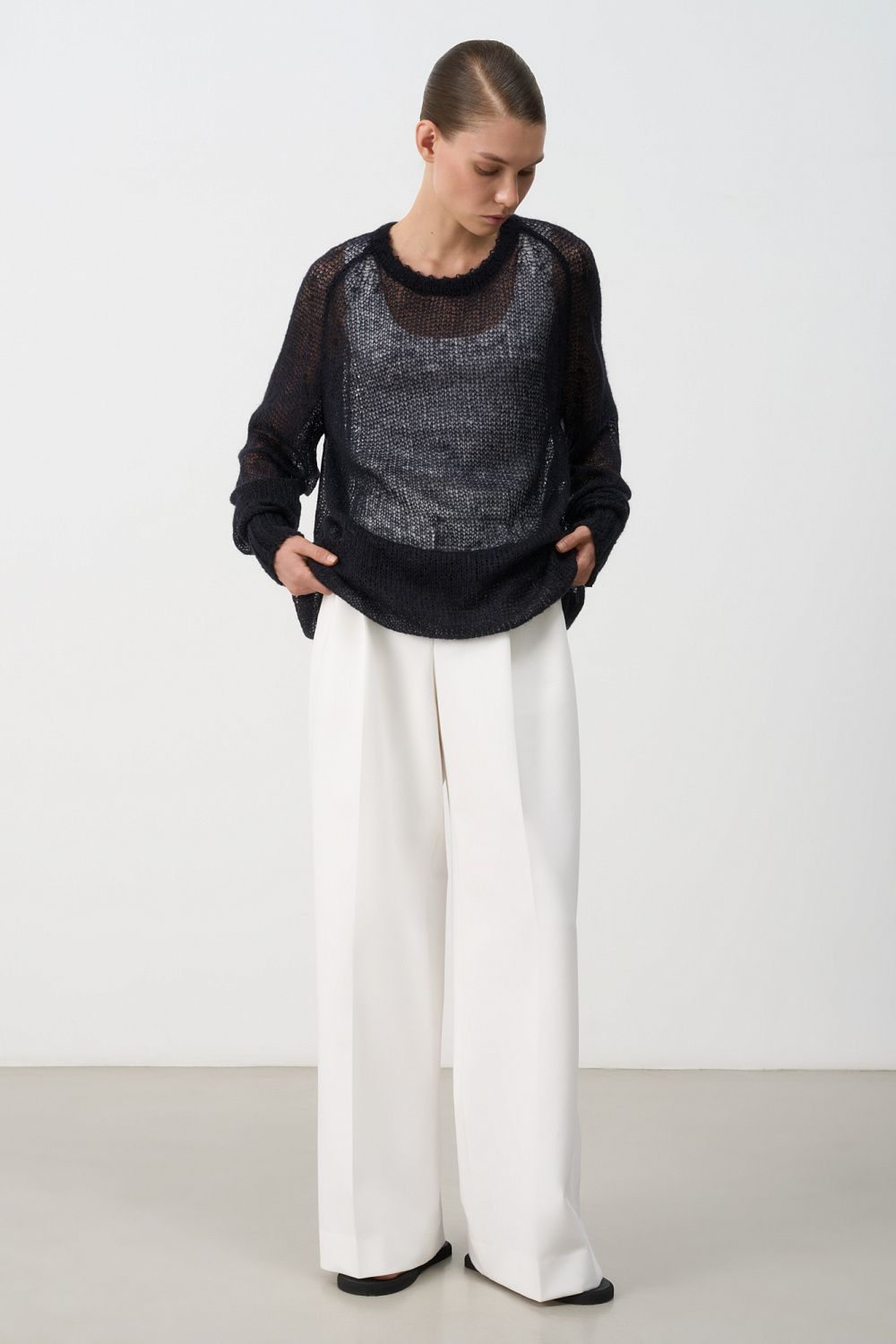 Knit semi-sheer wool blend jumper. Loose silhouette with dropped shoulder line. We recommend wearing a top underneath.