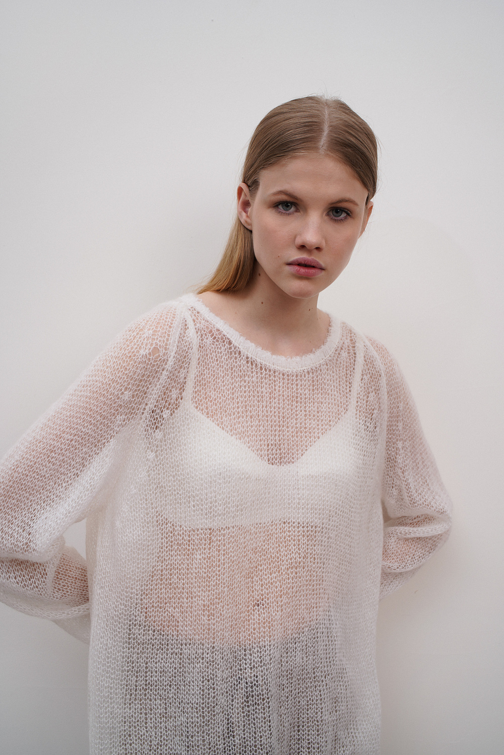 Knit semi-sheer wool blend jumper. Loose silhouette with dropped shoulder line. We recommend wearing a top underneath.