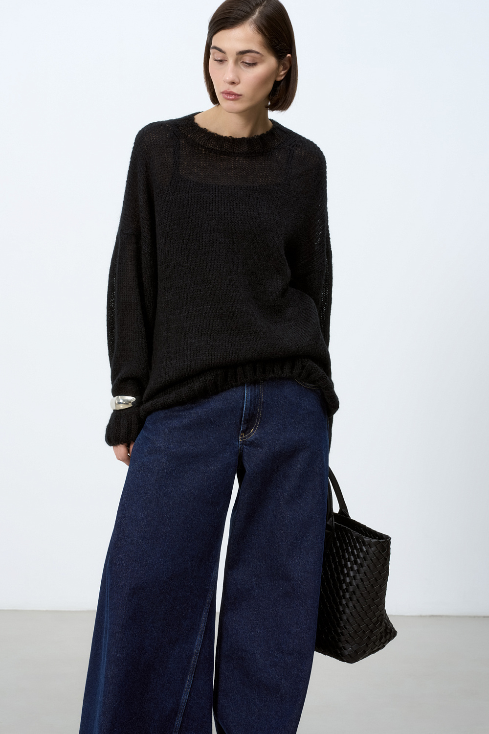 Semi-sheer openwork jumper with dropped shoulders. Lightweight jumper made from soft yarn. Wide ribbed cuffs and hem.