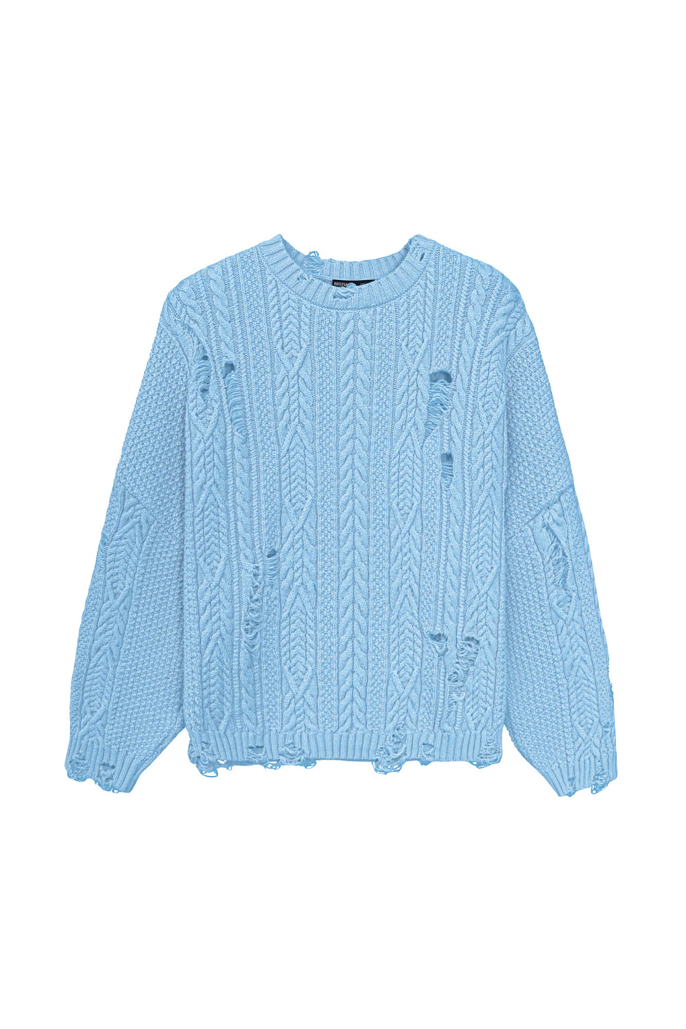 Viscose and cotton blend knit jumper. Features long sleeves, round neckline and grunge cut-outs throughout.