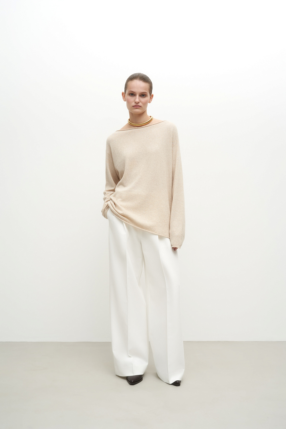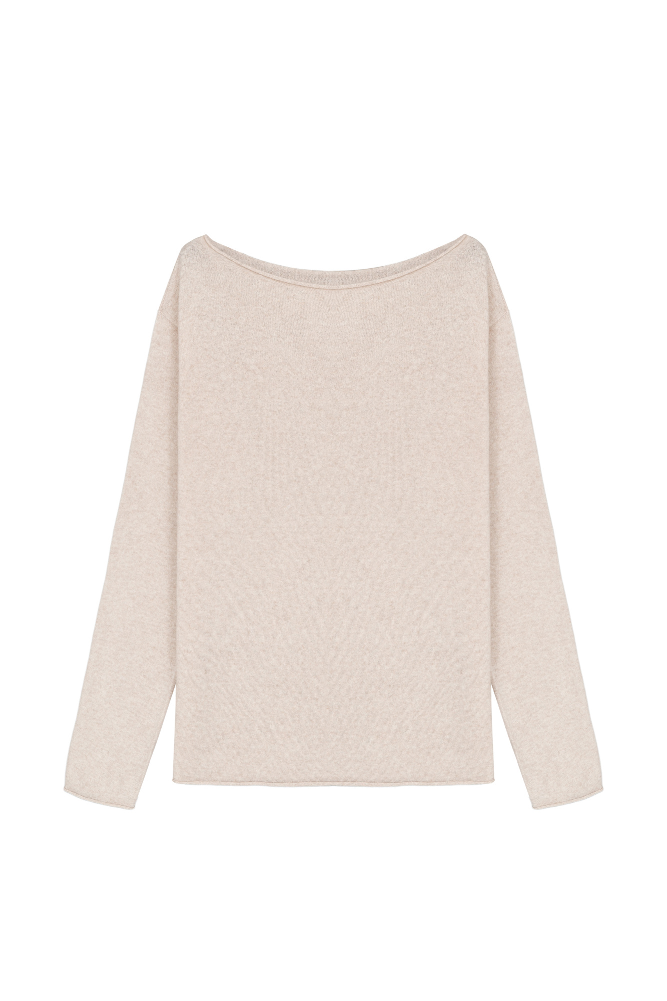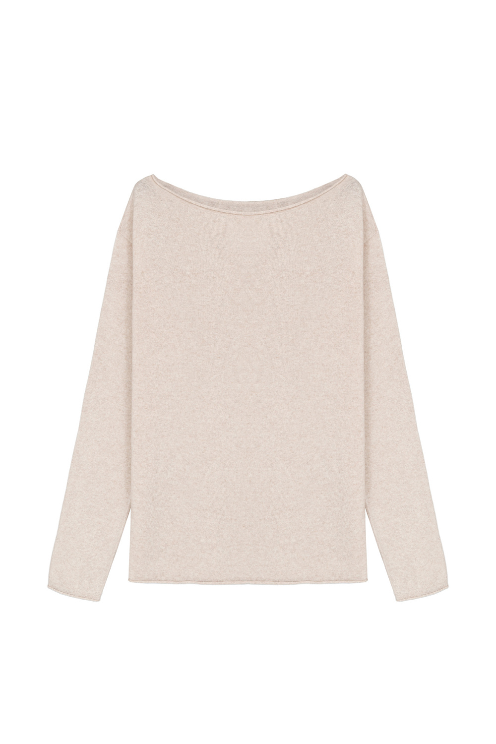 Wool and cashmere knit jumper with rolled edges and dropped shoulders.