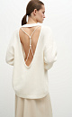 Alpaca wool knit jumper. Loose silhouette with dropped shoulders and an open back with a drawstring. Ribbed edges.