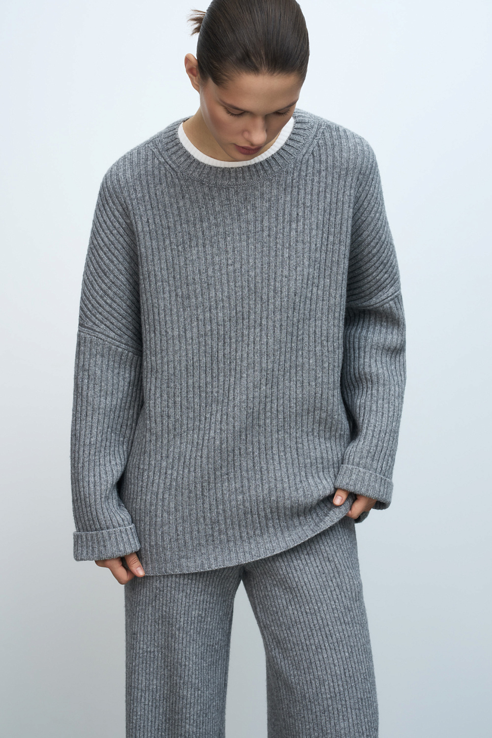 Knitted jumper made of wool with the addition of cashmere. Loose silhouette model with dropped shoulders and turn-up cuffs.