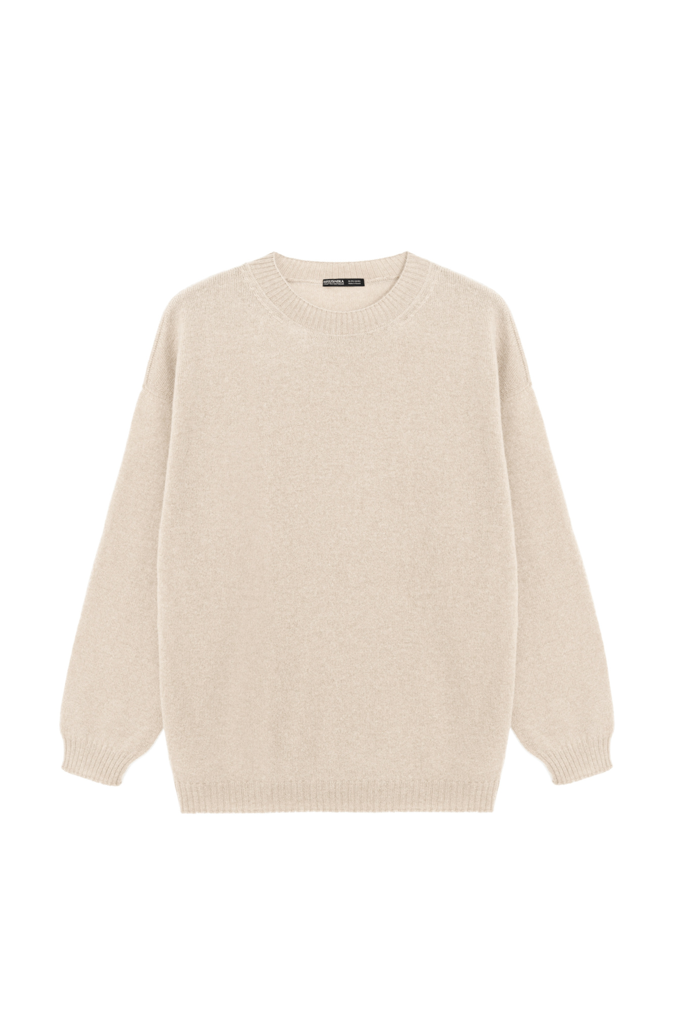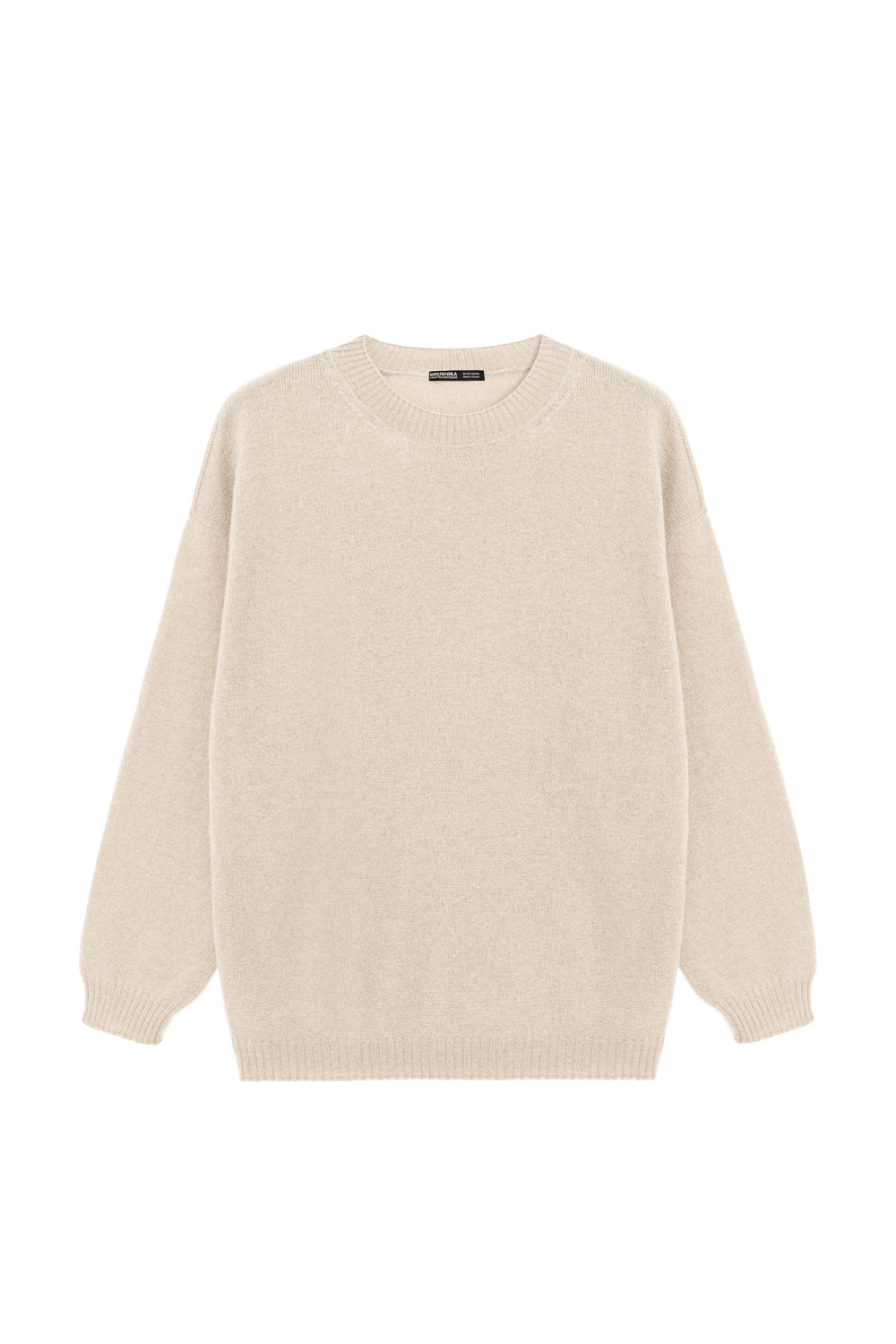 Knitted jumper made of 100% cashmere. Loose silhouette model with dropped shoulder line, ribbed edges.