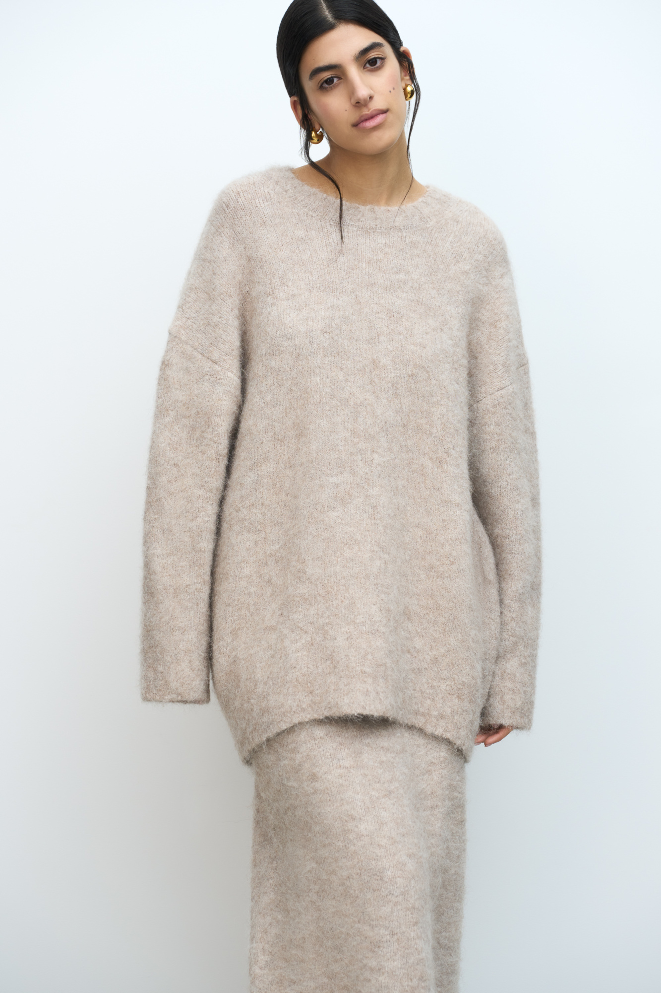Alpaca wool knitted jumper. Oversized model with dropped shoulder line and ribbed edges.