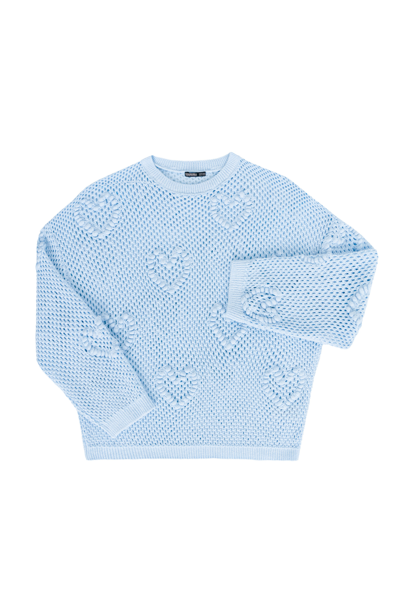 Knit jumper with hearts. Loose silhouette with dropped shoulder line and ribbed edges.
