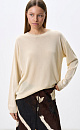Knitted long sleeve made of thin viscose with a loose silhouette. Drop shoulders, a round neckline and a branded label on the sleeve.