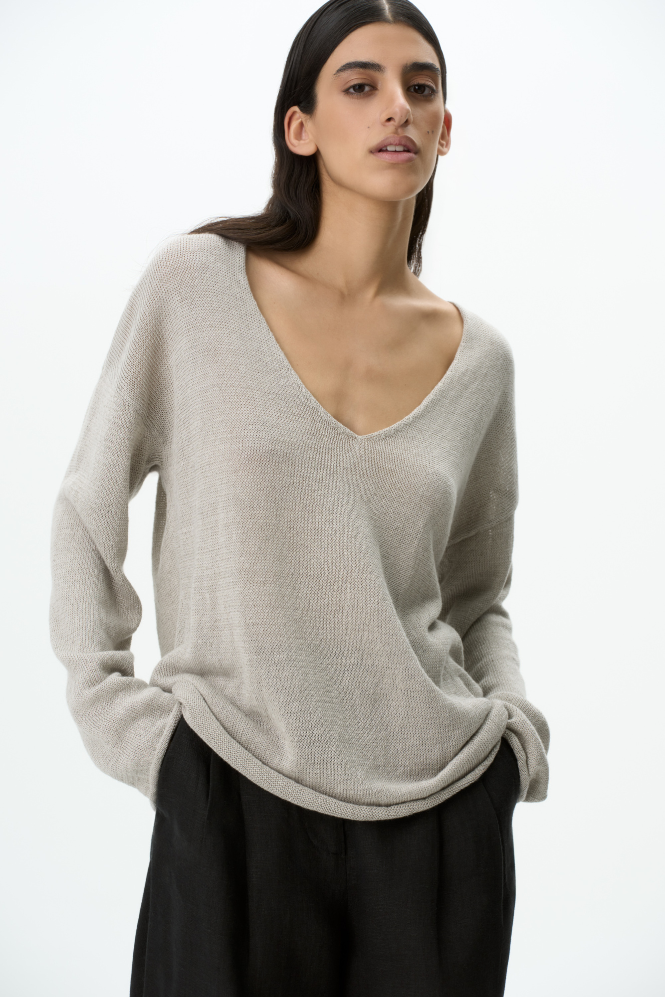 Fitted knitted jumper with a cut-out, long sleeves and a label at the side.