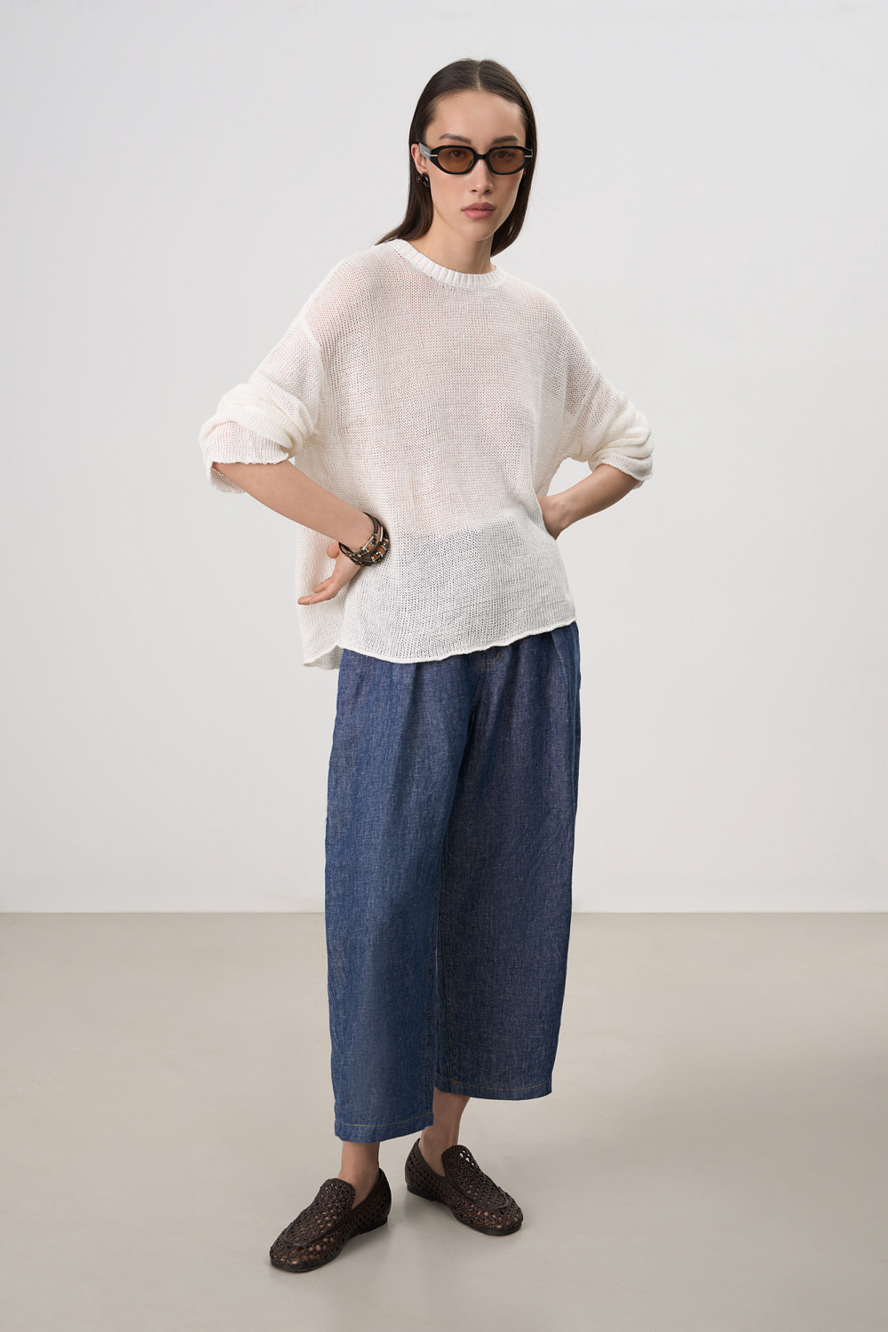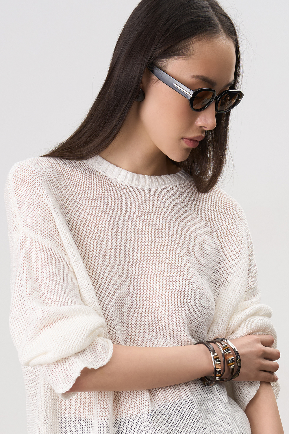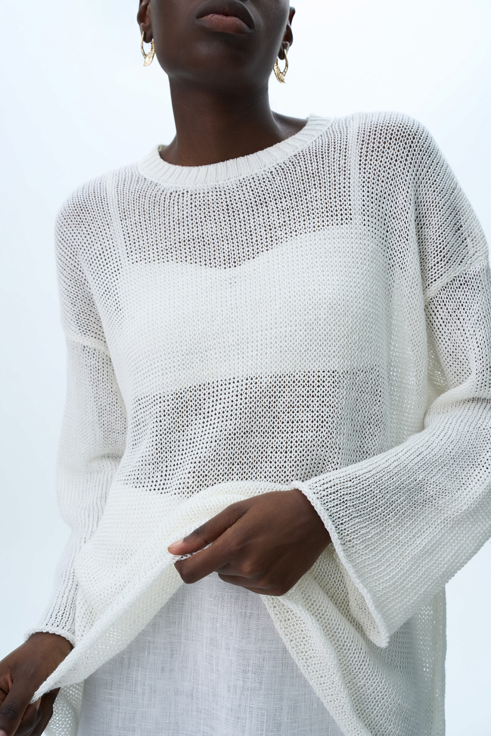 Loose semi-sheer jumper with dropped shoulder line.