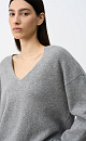 Knitted jumper with V-neck made of 100% cashmere. Loose silhouette model with dropped shoulder line. You can complement the look with trousers in the same style.