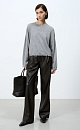 Cropped knitted jumper made of wool and cashmere. Loose silhouette model with dropped shoulder line. The neckline, sleeve cuffs and bottom of the product are made with fraying.