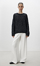 Knitted jumper made of alpaca wool with the addition of lurex. Loose silhouette model with dropped shoulders and a round neckline. The product is decorated with knitted braids on the sleeves and a monogram on the chest.